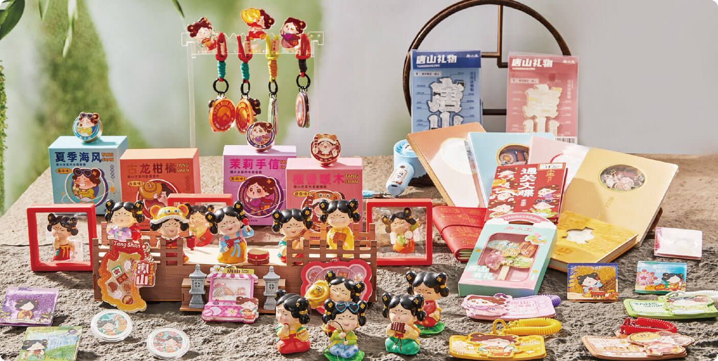 唐小主是深度挖掘盛唐文化打造的城市文旅超级IP,以身着唐制华服的憨萌胖女孩为核心形象,传递善良、勇敢、自信、真诚、幸运的精神内核。围绕 IP 形象,开发潮玩、日用、美食、非遗等多元文创系列,涵盖盲盒、毛绒玩偶、饰品挂件、文具纸品、家居好物等丰富品类,兼具观赏性、实用性与纪念价值。产品深度融合唐山地标、非遗技艺与地方特色美食,打造出极具地域辨识度的文旅伴手礼。